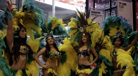Een samba show als opening (15 min.) in tropische samba kostuums (alle opties: dans-show.be)